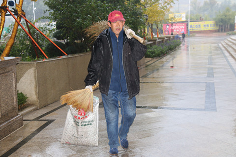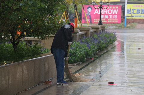 外保頂雨清掃路面