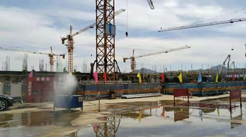 施工現(xiàn)場的霧炮與噴淋系統(tǒng)確保無塵施工