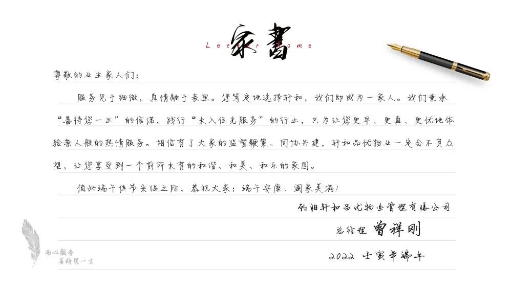 軒和地產(chǎn)近年來所開發(fā)的項目,都尊崇“未入住,先服務(wù)”的居住理念,在節(jié)日期間由軒和品優(yōu)物業(yè)為準業(yè)主送上祝福。感謝廣大業(yè)主對軒和地產(chǎn)的信賴與支持的同時,也為您今后入住打下良好的基礎(chǔ)。