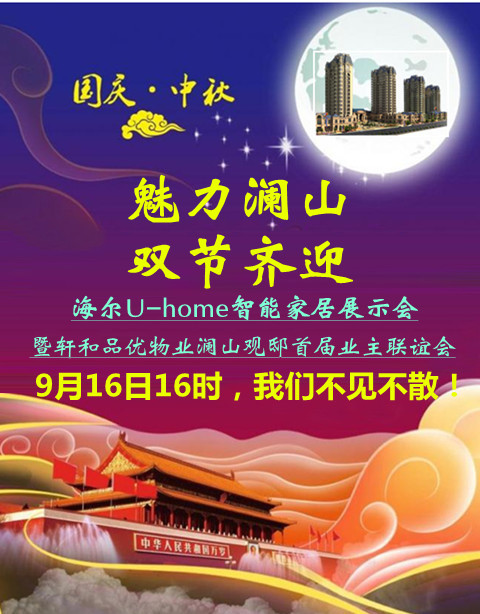 9月16日“魅力瀾山 雙節(jié)齊迎”海爾U-HOME智能家居展示會暨軒和品優(yōu)物業(yè)瀾山觀邸業(yè)主聯(lián)誼會