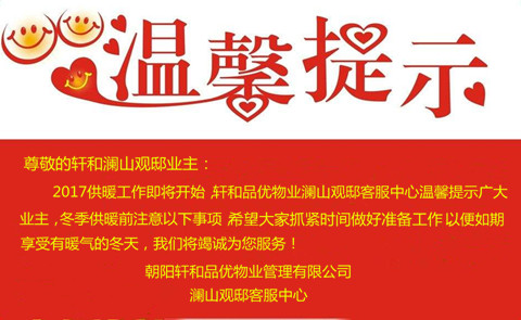 軒和品優(yōu)物業(yè)溫馨提示廣大業(yè)主‖冬季供暖前注意事項
